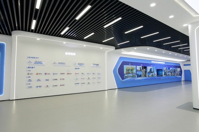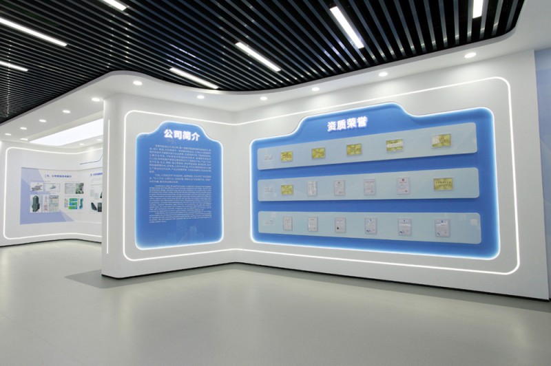 此次企業展廳設計向客戶展示企業發展過程、企業文化、企業產品。我們根據企業特點和行業特性,提煉出一些或者一個符號并結合色彩的運用貫穿整個展廳,同時利用一些先進的技術設備體現展廳的時代感和科技感,塑造和傳播企業形象。